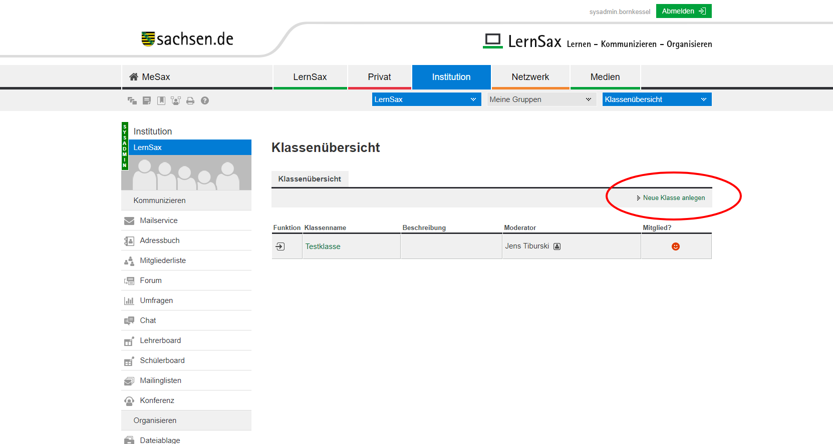 Zunächst muss vom Admin in den Eigenschaften der Institution die Funktion freigeschaltet werden.